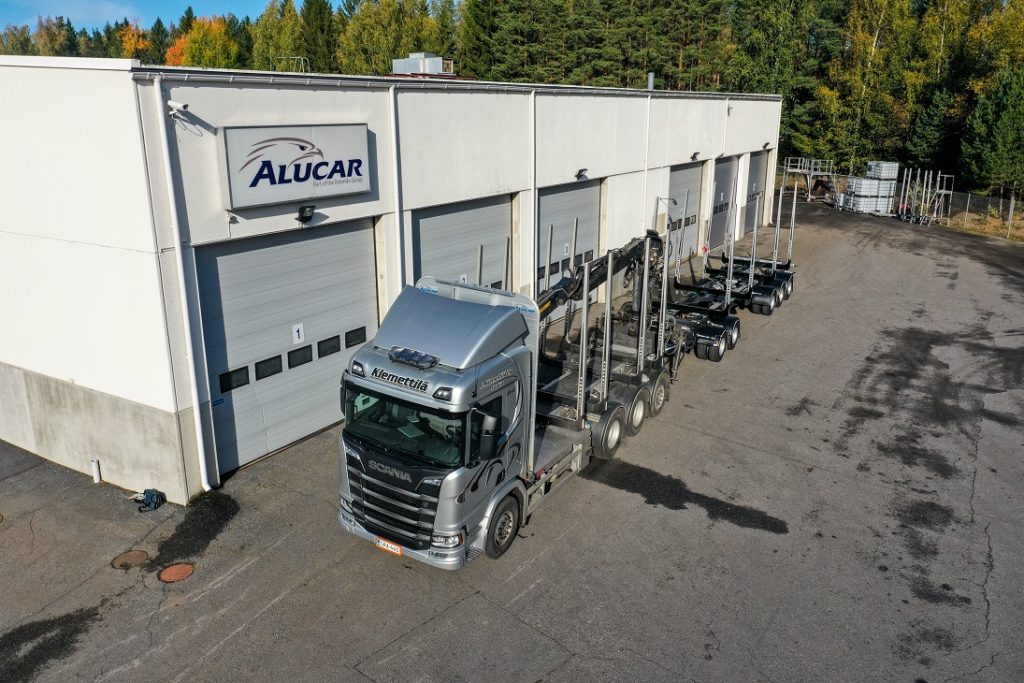 Klemettilän uusi auto varusteltiin puunajoon Alucarilla Maxmossa.