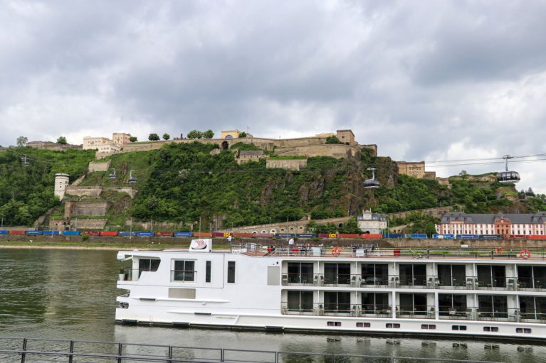Ehrenbreitsteinin linnakkeelle kulkee köyrirata, jolta avautuu upeat maisemat Rhein- ja Mosel-jokien kohtaamispaikkaan.