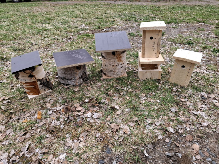 - Voit tutustua erilaisiin eläinten asumuksiin, mm. linnunpönttöihin, hyönteishotelleihin, lepakonpönttöihin ja siilinpesään.