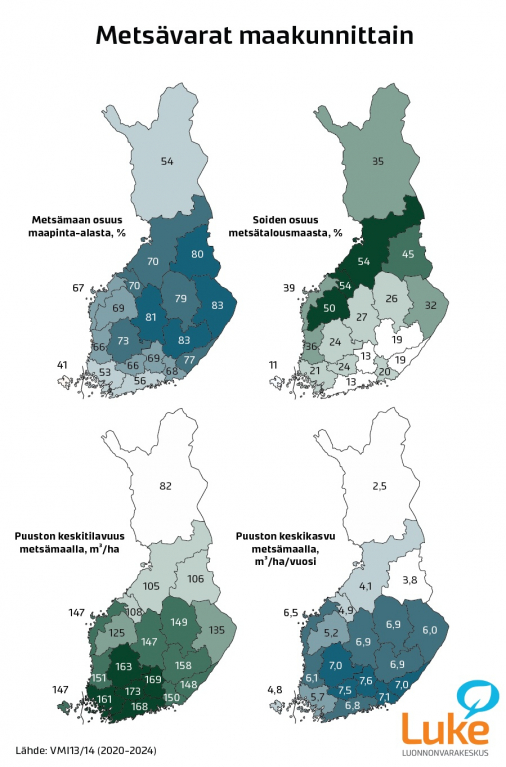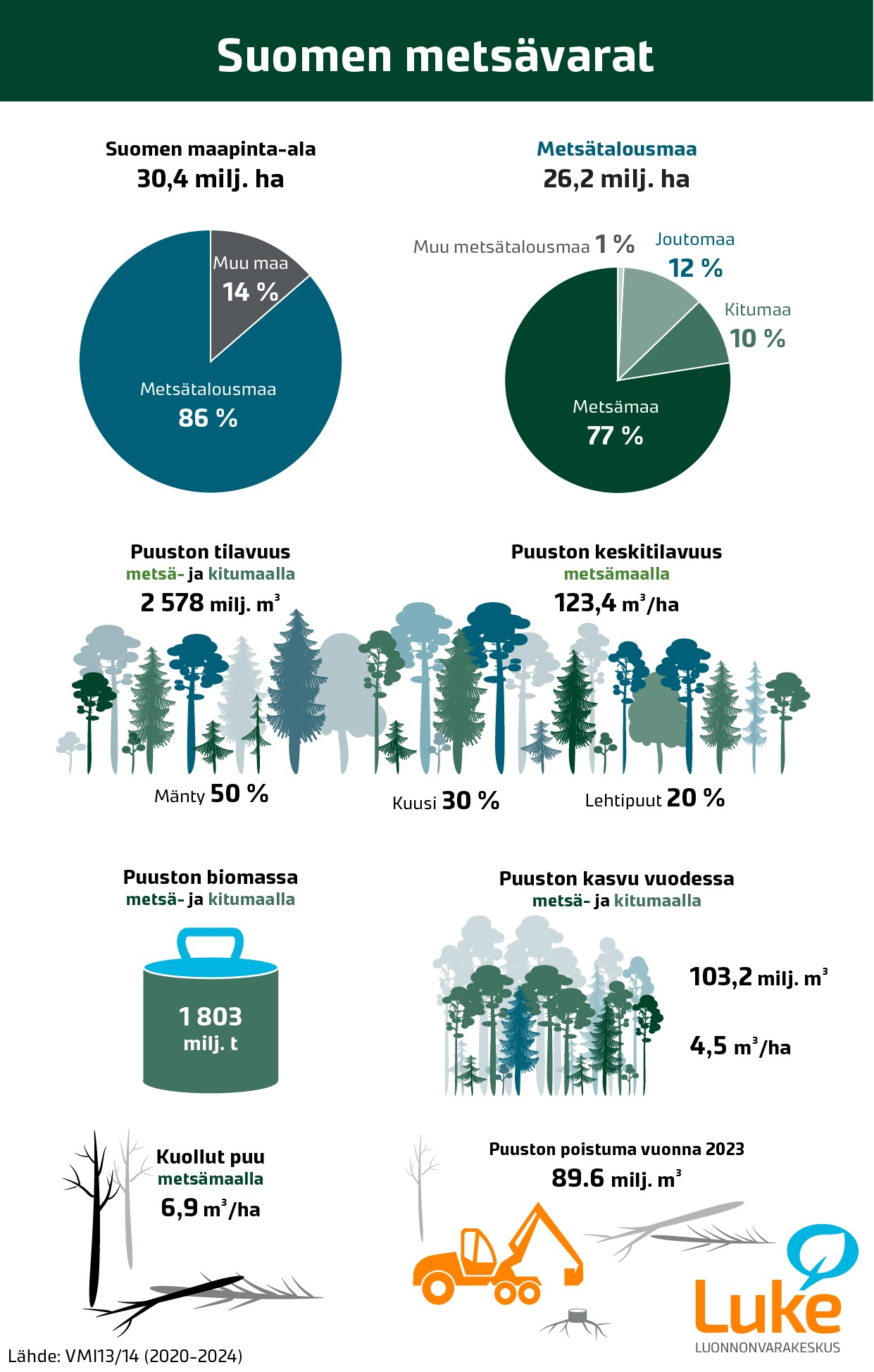 Tuoreimman mittaustiedon mukaan puuston vuotuinen kasvu on 103,2 miljoonaa kuutiometriä. Edellisvuonna arvio kasvusta oli 103,0 miljoonaa kuutiometriä, suurimmillaan kasvu on ollut 107,8 miljoonaa kuutiometriä. Luonnonvarakeskuksen (Luke) julkaisema uusin metsävaratieto perustuu valtakunnan metsien inventoinnissa (VMI) vuosina 2020–2024 mitattuihin koealoihin.