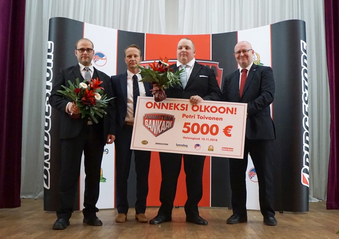 Toivosen Petri. Hänon tullut Harrille tutuksi juttukaverina nykyajan LA –puhelimena toimivan Zeibo -sovelluksen kautta. Juttutuokioissa oli tullut ilmi, että Petri asuu Jyväskylässä ja koska Petri oli Harrin ainoa tuttu noilla kulmilla laittoi hän viestiä Petrille apua pyytäen. Pian Petri vastasi ja tiedusteli huolissaan kollegansa vointia. Lyhyt yhteenveto tapahtuneesta sai Petrin hylkäämään aurinkoisen vapaapäivänsä ja alkoi järjestelemään apua Harrille. Ensiksi Petri järjesti itselleen serkkupojan avulla kyydin sairaalan pihaan mistä mukaan otettiin Harri ja parkissa ollut kuorma-auto. Sen jälkeen matka jatkui kohti Vaajakosken huoltamoa missä perään kytkettiin pihaan pysäköity kärry. Nyt Harrin työnantaja saisi noudettua yhdistelmän yhdestä osoitteesta ilman pulmia ja Harri saattoi hyvillä mielin jättää yhdistelmän odottamaan noutajaansa. Harrin kokema kiitollisuus sai aikaan sen, että hän ilmoitti Petri Toivosen mukaan Ammattina Sankari kampanjaan herrasmiehenä joka tässä kiireisessä ja itsekkäässä maailmassa on valmis pyyteettömästi auttamaan kollegaansa. Kun kyse ei ole lähimmistä kavereista vaan samalla alalla toimivista kaveruksista ei avun pyytäminen eikä avun antaminen ole itsestään selvyyksiä. Kampanjan palkintoraati toteaa: - Tässä hektisessä maailmassa ei valitettavasti enää usein näe vilpitöntä auttamista kun arjen vaakakupissa on oma vapaa-aika, mukava sohva, tv, sosiaalinen media, kiire ja itsekkyys. Palkintoraati lisää vielä, että tämän vuotinen sankari edustaa arjen sankaruutta ja lähimmäisen rakkautta ilman vaaraa tai rytinää. Hänessä on lämpöä ja pyyteetöntä auttamishalua. Petri Toivonen palkittiin Helsingissä torstaina 15.11. järjestetyssä Ammattina Sankari palkintogaalassa 5.000 euron sekillä. Palkintosummasta puolet, 2.500 euroa Toivonen lahjoitti kampanjan sääntöjen mukaan Keski-Suomen keskussairaalan lastenosastojen tuki Ry:lle auttaakseen lastenosastojen toimintaa. Palkinnon luovutti tilaisuuden juhlapuhuja työministeri Jari Lindström. Ammattina Sankari -kampanja on seitsemän vuoden aikana lahjoittanut eri hyväntekeväisyyskohteisiin yhteensä 37 357 Euroa.