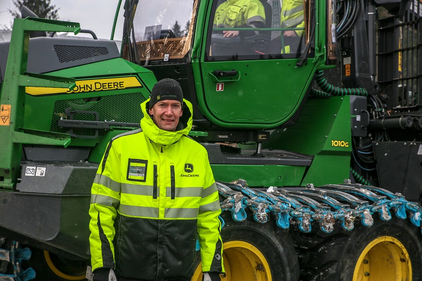 John Deeren Euroopan markkinoista vastaava Janne Märkälä on tyytyväinen, kun 1010 G on nyt saatu konekierrokselle ja asiakkaiden koeajettavaksi. Vastaanotto tällä näppärän tehokkaalla koneella on ollut innostuneen myönteinen. Märkälä uskoo, että uusi, pykälää pienempi kone riistää muutaman kaupan 1110 G:ltä. Mutta samalla hän muistuttaa, että kannattaa katsoa koneen tehoa, vääntöä ja muuta suorituskykyä eikä pelkkää numeroa koneen kyljessä. Pienemmistä ja keveämmistä malleista saadaan nykytekniikalla yllättävän tehokkaita kokonaisuuksia.